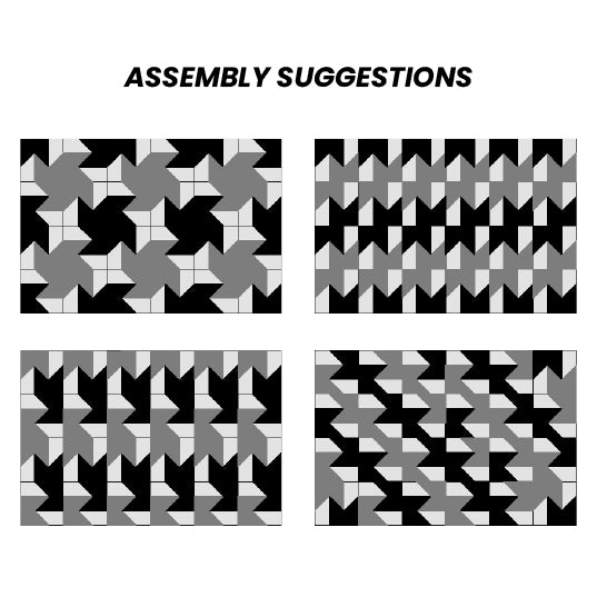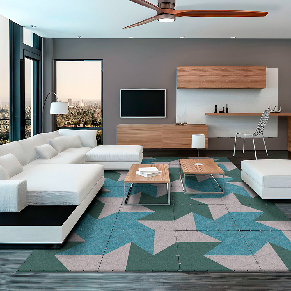 Creative and unlike anything you've ever seen. It can be assembled in different ways, allowing you to change the look of your decor from time to time and always feel like your home is renewed. The secret lies in the way it was designed. There are individual panels that change the design of the rug depending on the position in which they are assembled.